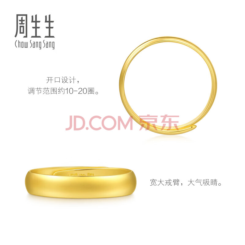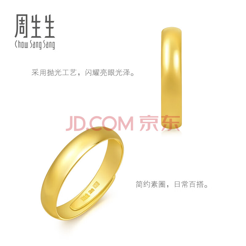 商品相册:周生生黄金戒指 足金素圈活口戒情侣 可作对戒09141R 计价4.35克第