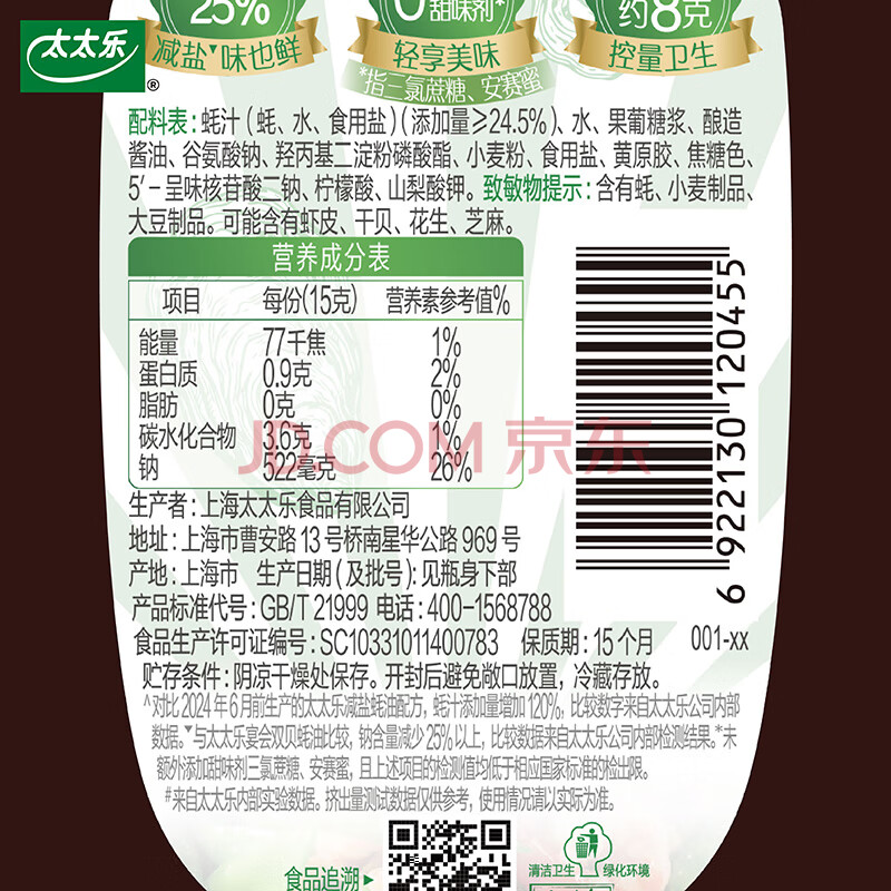 商品相册:太太乐 减盐蚝油 烧烤火锅蘸料提鲜 232g第1张/共3