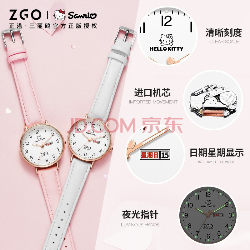 商品相册:正港(ZGO)x三丽鸥手表女学生初高中生女孩女生考试专用HelloKitty手表 2108第