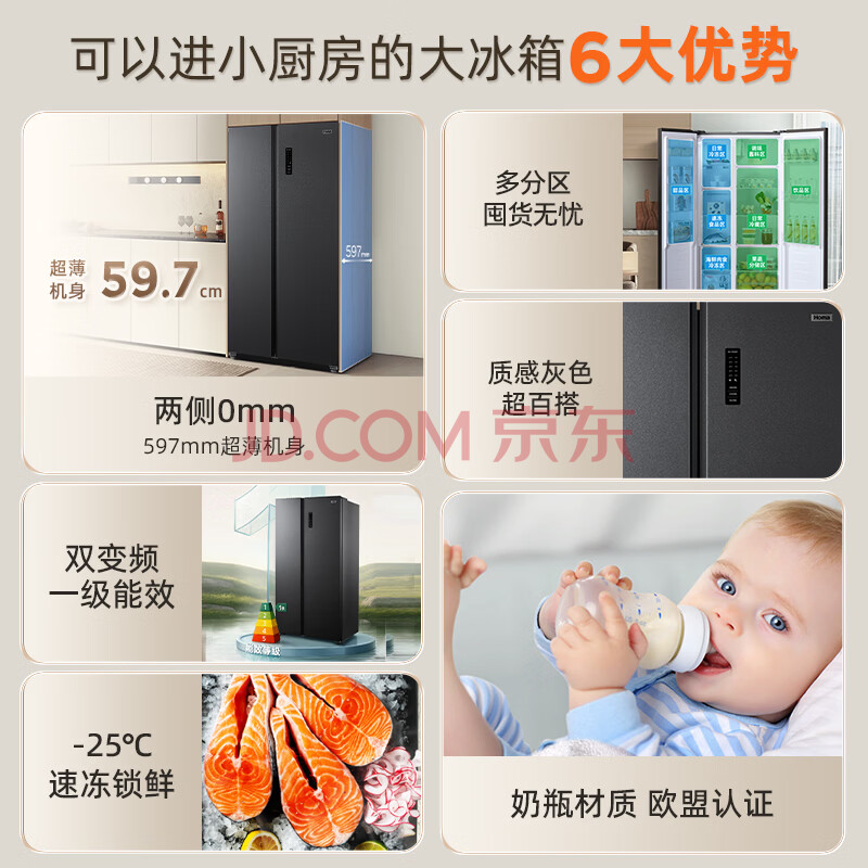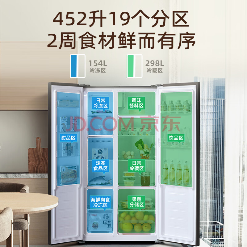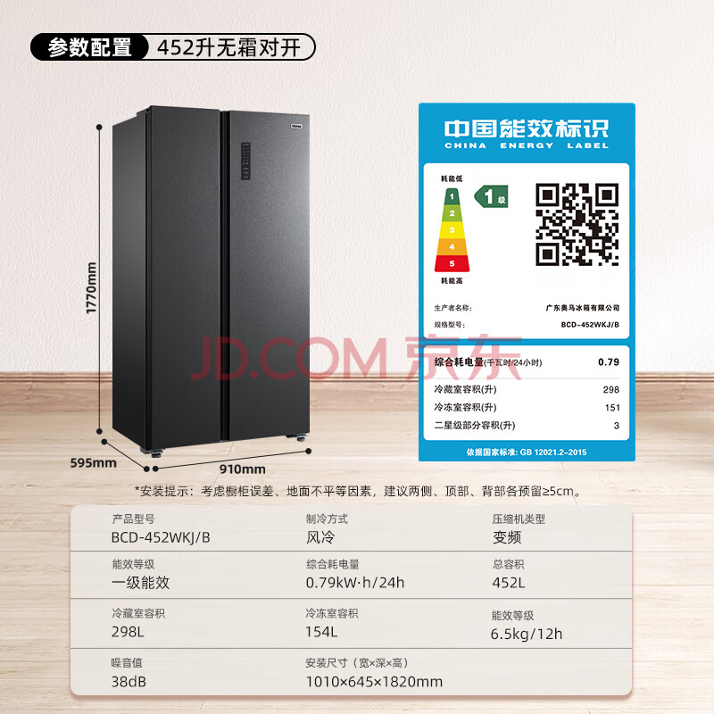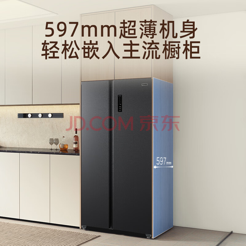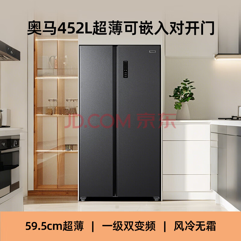 商品相册:奥马(Homa)452升对开门家用电冰箱60cm以下超薄机身一级能效双变频风冷无霜薄款双开门452WKJ/B第