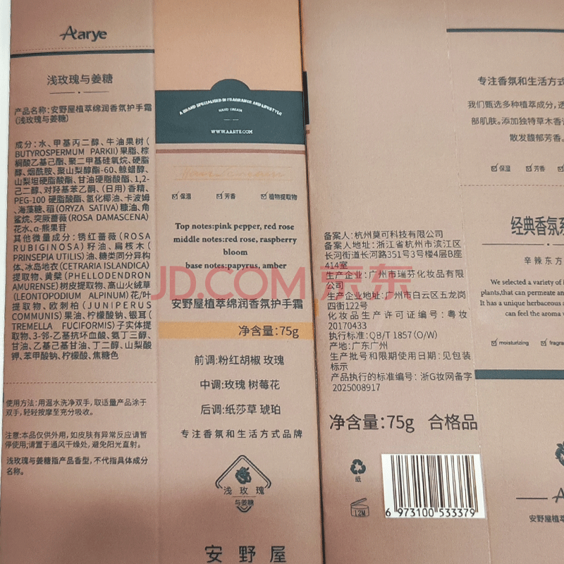 商品相册:安野屋(AARYE)护手霜浅玫瑰与姜糖共80g滋润保湿生日礼物女第