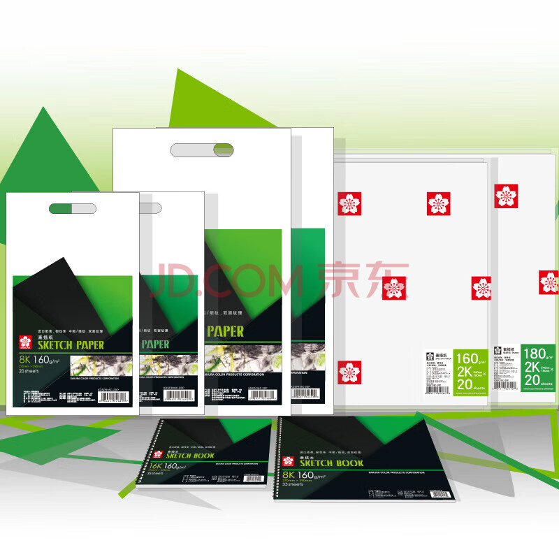 商品相册:樱花(SAKURA)袋装素描纸180g 2k 20张入 2开铅笔炭笔画速写纸学生儿童初学者写生美术绘画纸美术写生第