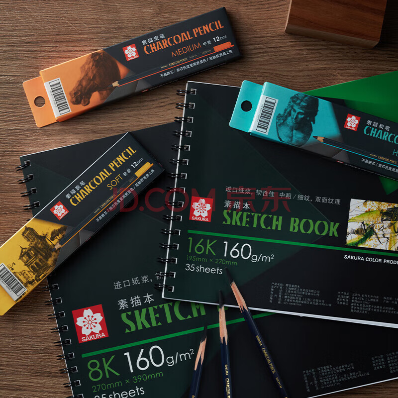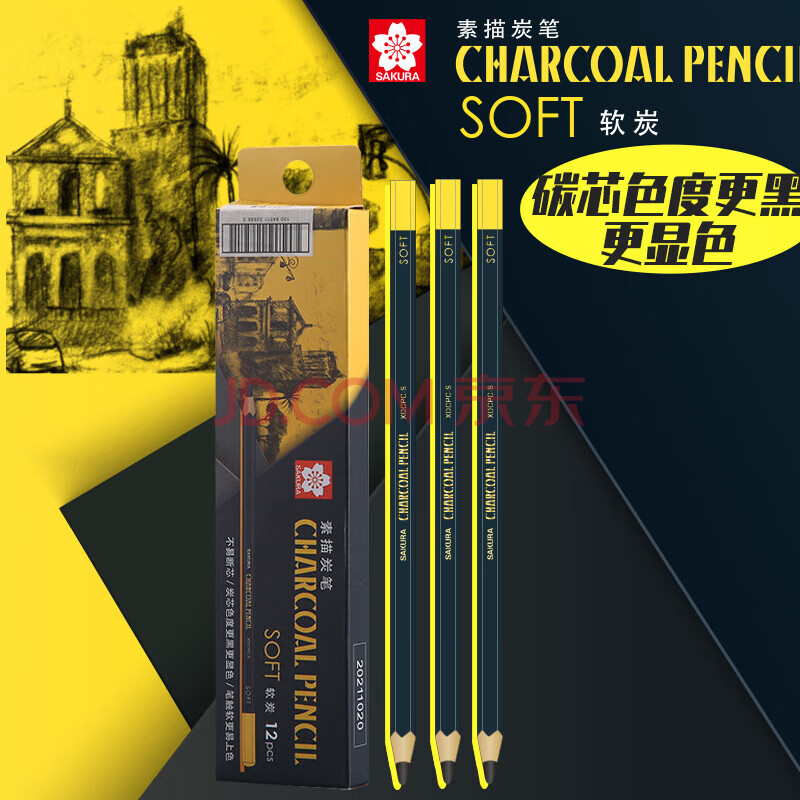 商品相册:樱花(SAKURA)素描铅笔炭笔12支整盒装(软炭)软炭软中硬美术生写生速写绘画专用画笔速写马克笔绘画第