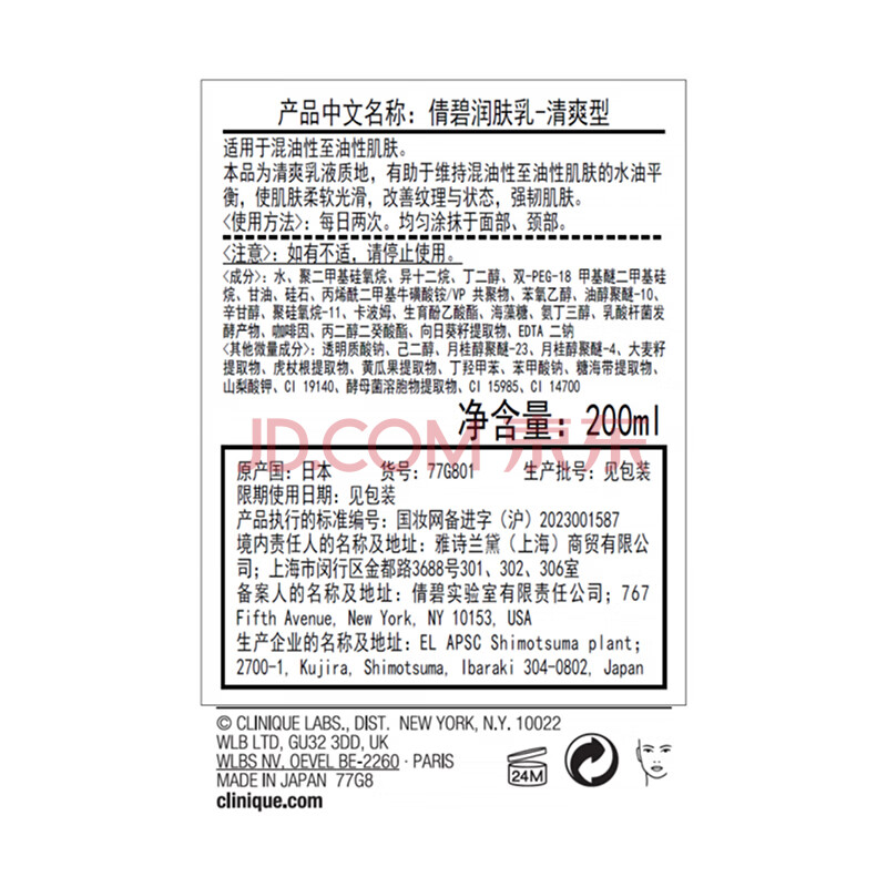 商品相册:倩碧混皮黄油200ml无油清爽乳液保湿面霜敏肌护肤品生日礼物送女友第