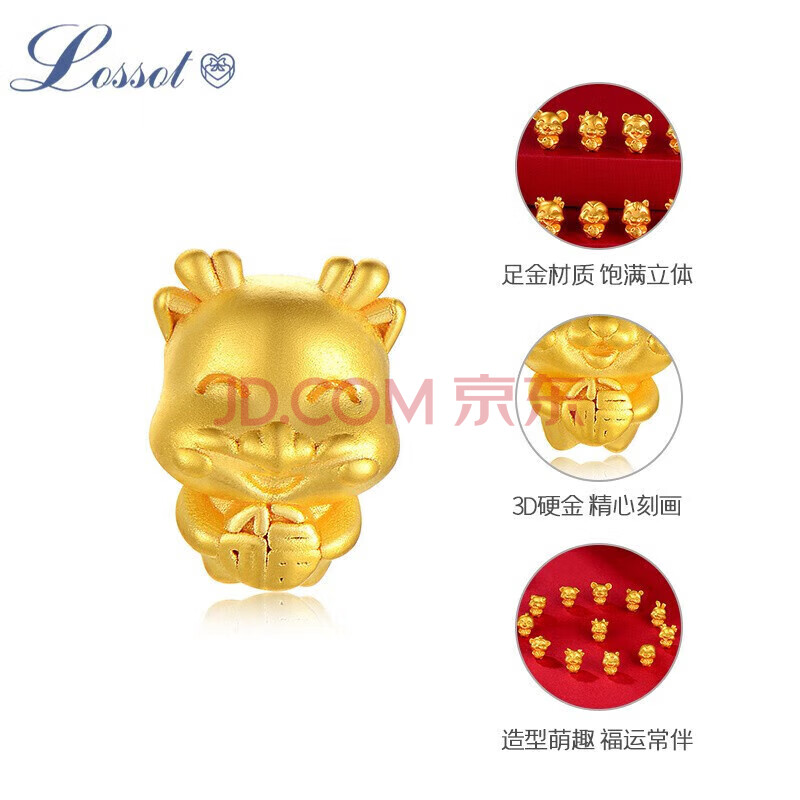 商品相册:Lossot十二生肖龙本命年手链足金五福龙黄金转运珠手链5D金龙生日礼物第