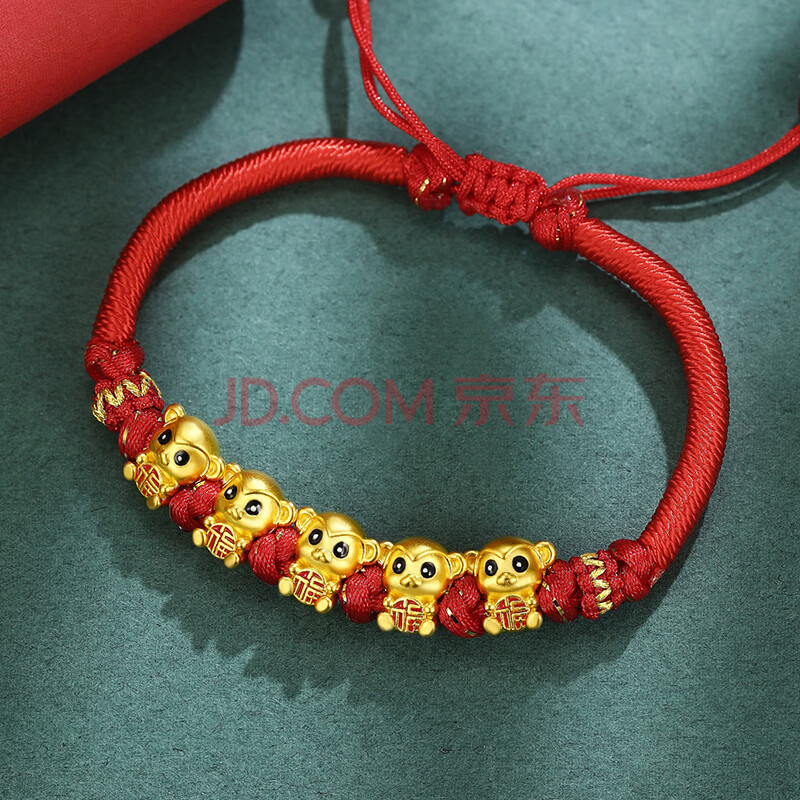 商品相册:Lossot十二生肖猴本命年手链足金五福猴黄金转运珠手链5D金猴生日礼物第