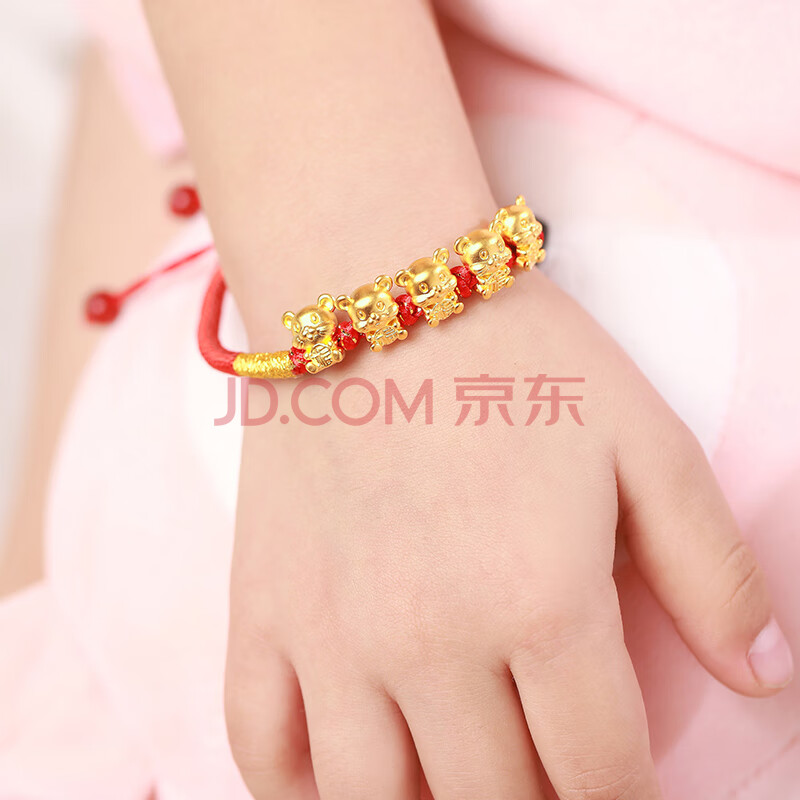 商品相册:Lossot十二生肖鼠本命年手链足金五福鼠黄金转运珠手链5D金鼠生日礼物第