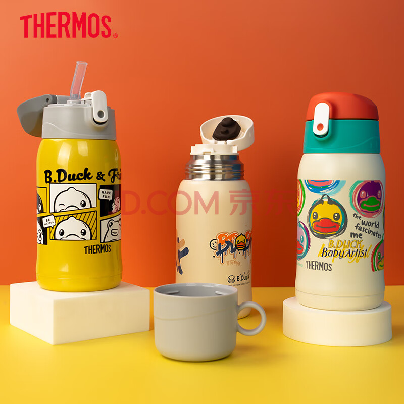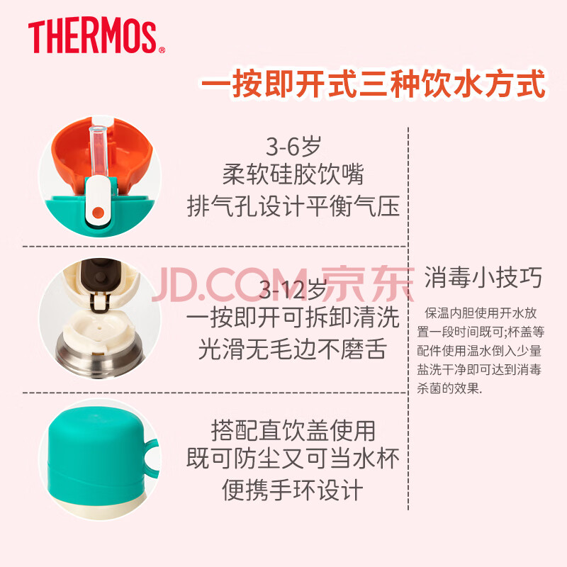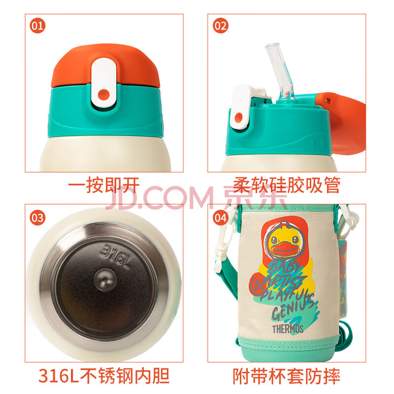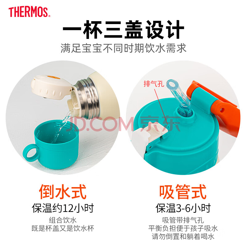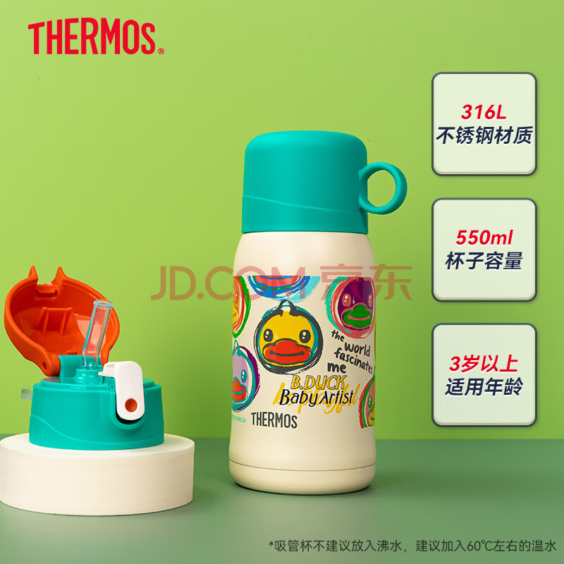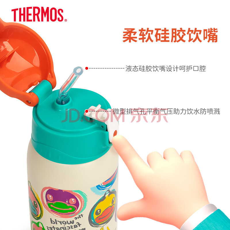 商品相册:膳魔师316L保温杯小学生儿童开学必备吸管水杯水壶含杯套550ml红绿第
