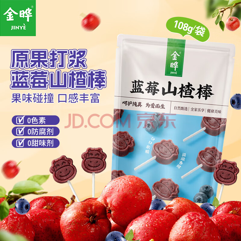 商品相册:金晔 休闲零食小牛山楂蓝莓棒棒糖内含独立小包装棒108g/袋第1张/共7