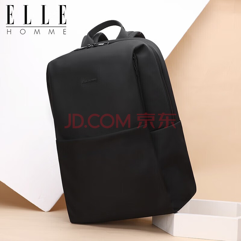 商品相册:ELLE HOMME男士双肩包 时尚大容量背包 14英寸电脑包轻便尼龙布08760黑色第
