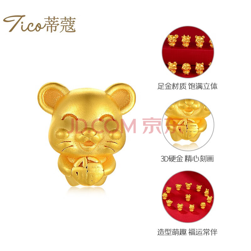 商品相册:蒂蔻(Tico)十二生肖鼠本命年手链足金五福鼠黄金转运珠手链红绳生日礼物第