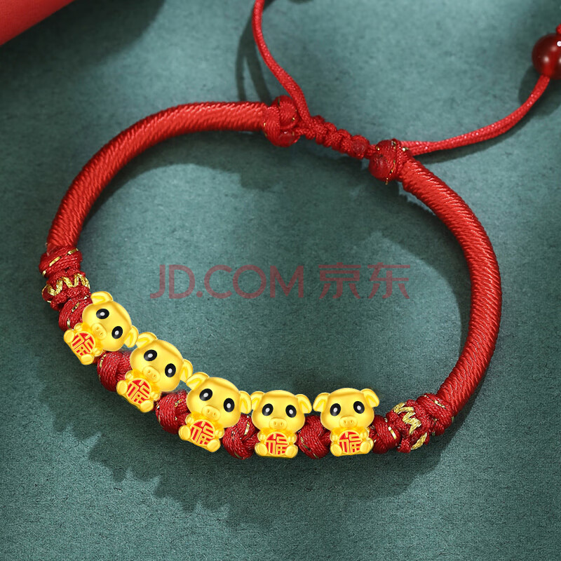 商品相册:蒂蔻(Tico)十二生肖猪本命年手链足金五福猪黄金转运珠手链红绳生日礼物第