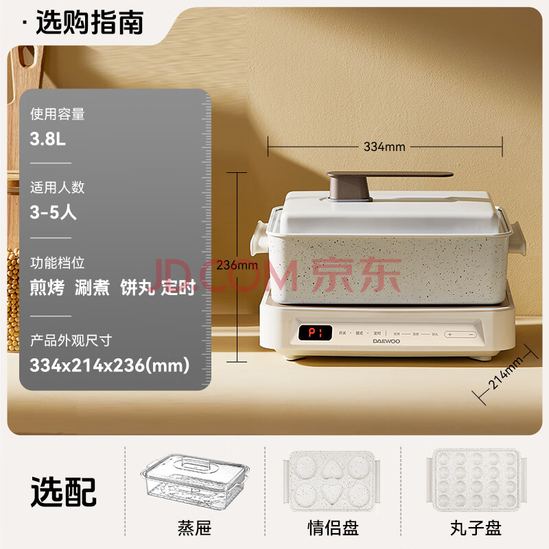 商品相册:大宇(DAEWOO)多功能锅网红料理锅 家用电火锅电热炒锅电烧烤炉电蒸锅电煮锅不粘送礼S11PRO深锅盘+煎烤盘第