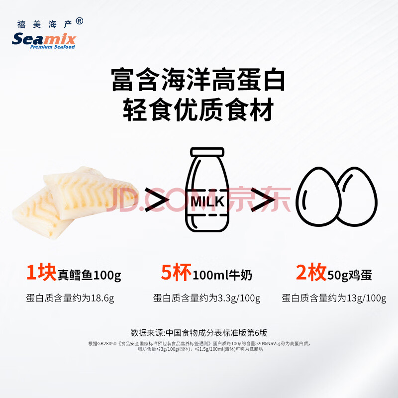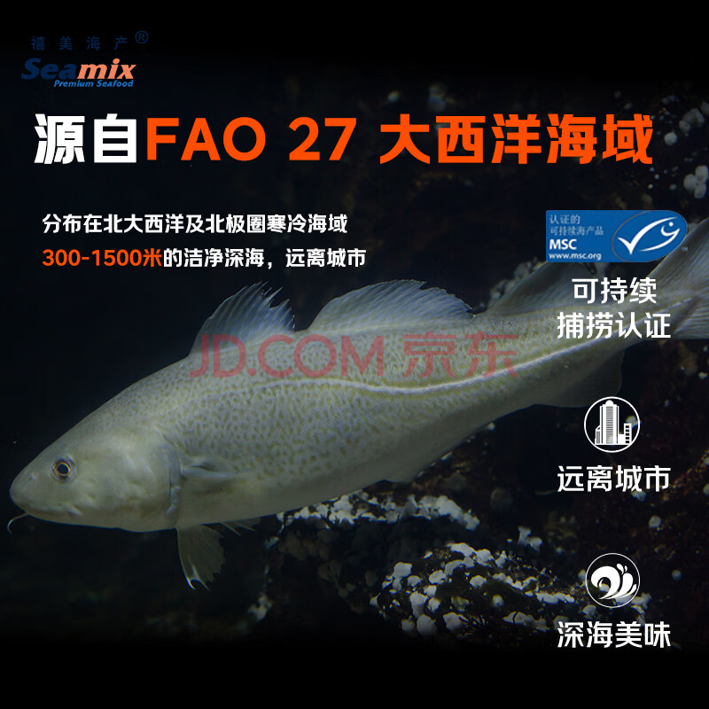 商品相册:禧美海产冷冻大西洋真鳕鱼净重1斤/袋 去皮去刺4-6块 生鲜 轻食海鲜第