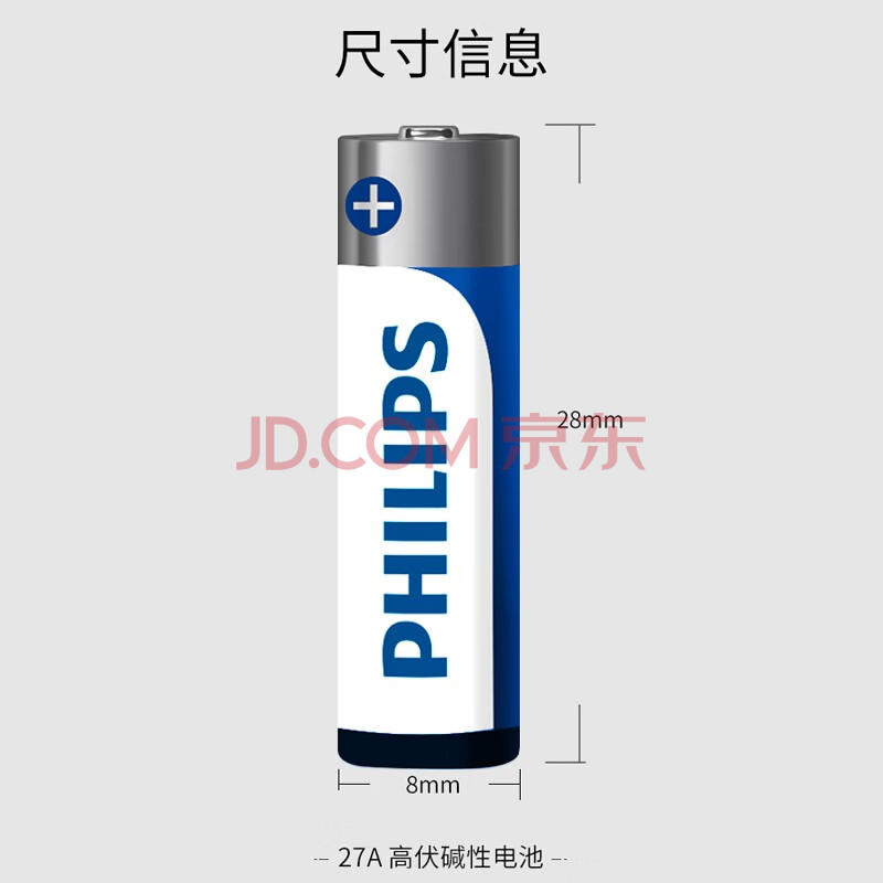 商品相册:飞利浦(PHILIPS)27A12V电池2粒赠螺丝刀高伏碱性电池适门禁门铃遥控器防盗器电动券帘门医疗仪器干电池27a第