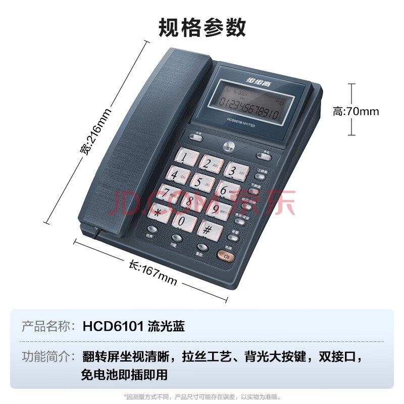 商品相册:步步高(BBK)电话机座机 固定电话 办公家用 免电池 60度翻转屏 HCD6101流光蓝第
