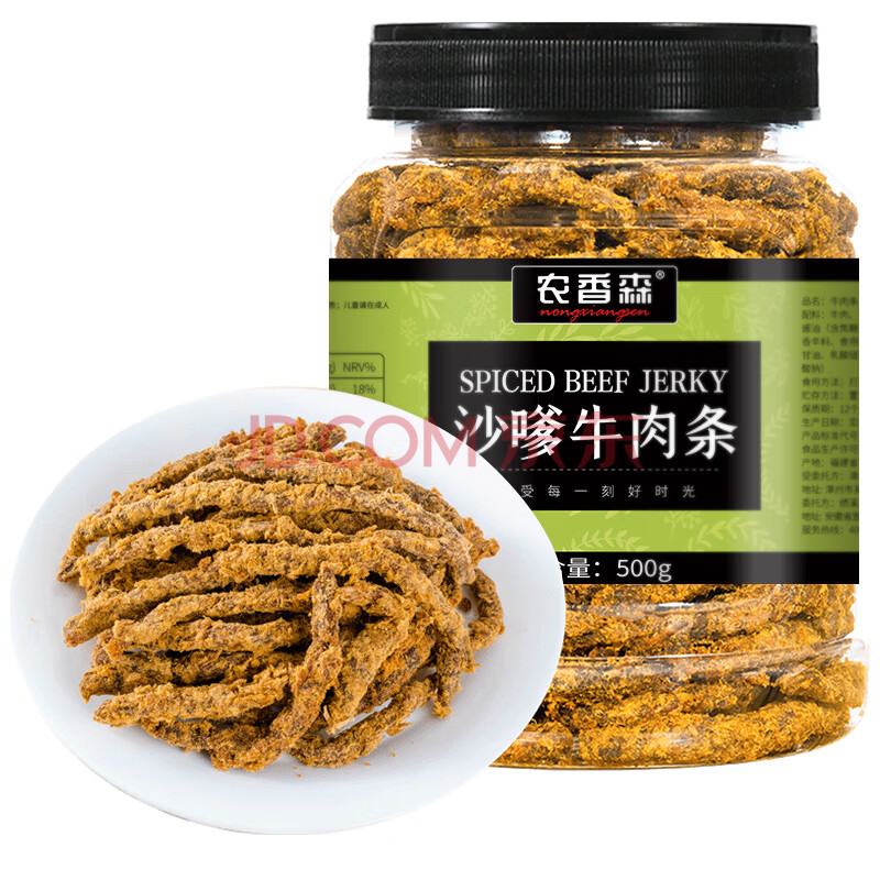 商品相册:农香森 沙嗲牛肉条500g手撕熟食内蒙古牛肉干辣味休闲办公零食肉食类第