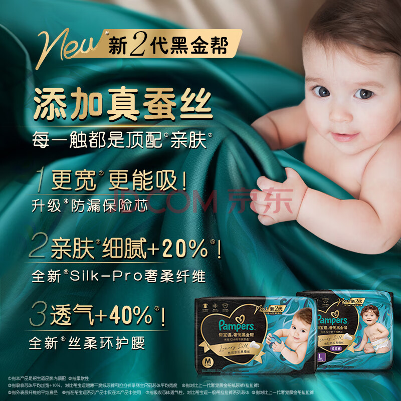 商品相册:帮宝适新生儿顶配黑金帮纸尿裤婴儿尿不湿尿片添加真蚕丝L32第