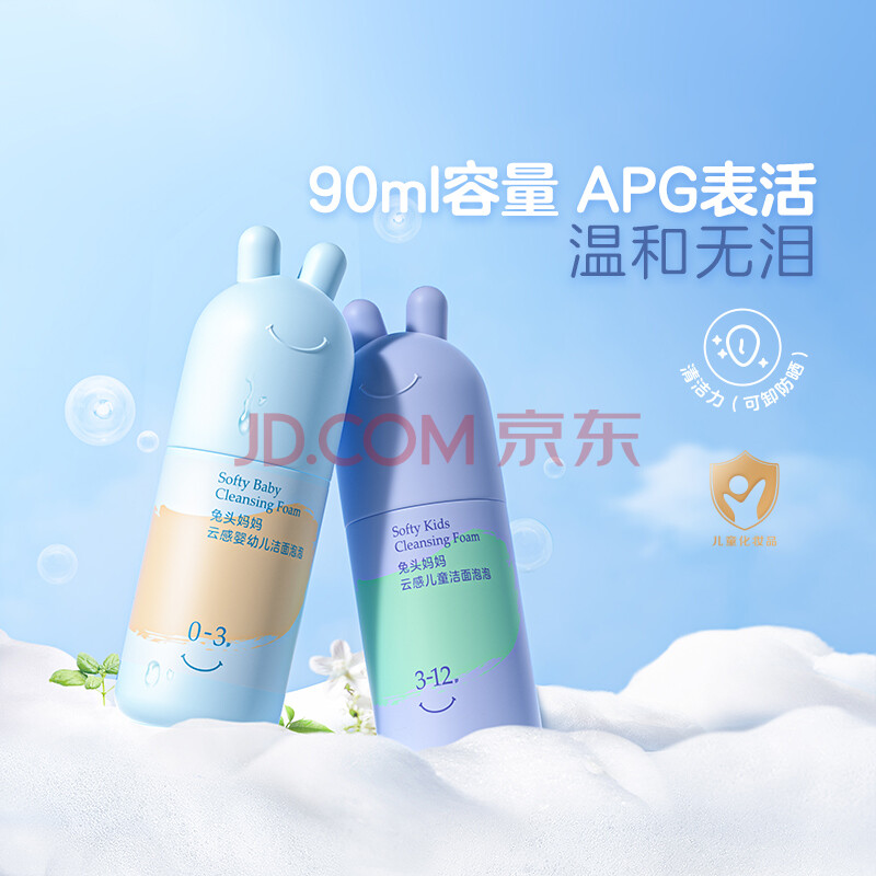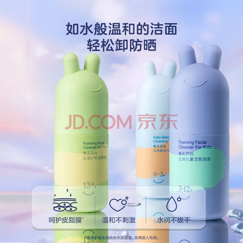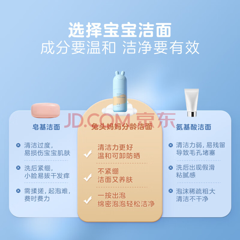 商品相册:兔头妈妈儿童洗面奶 宝宝洁面乳洁面泡护肤清洁洗脸舒缓卸防晒3-12岁90ml第
