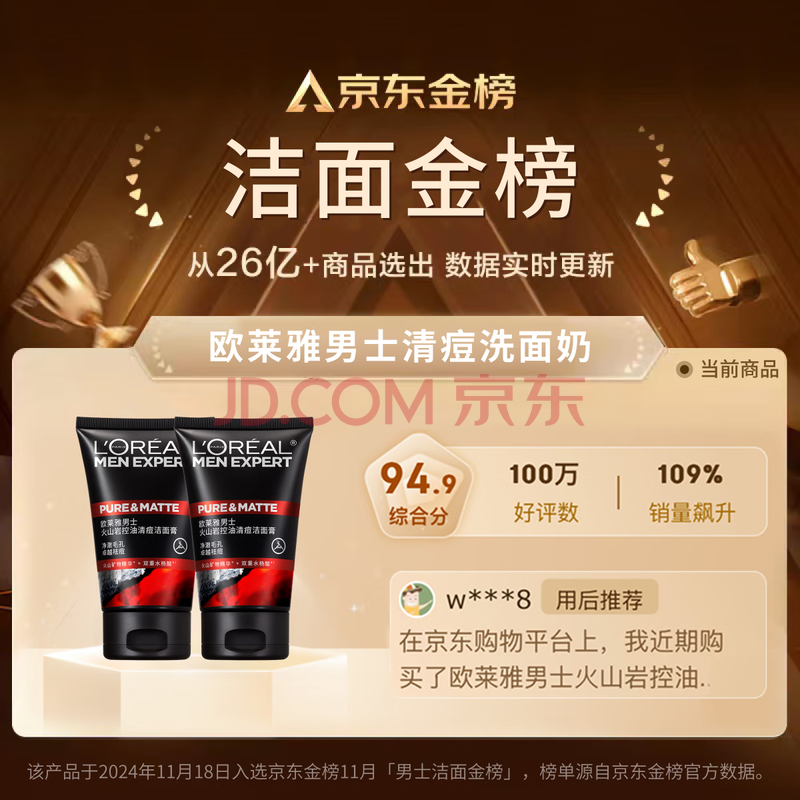 商品相册:欧莱雅男士专用火山岩控油清痘洗面奶套装祛痘洁面乳护肤品礼物第