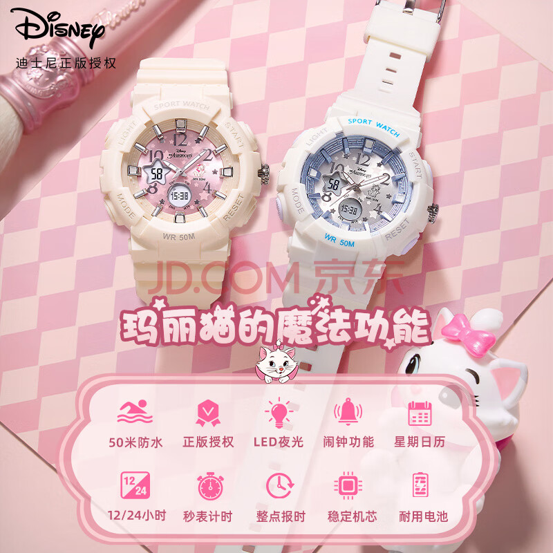 商品相册:迪士尼(Disney)运动手表女学生儿童个性潮流小学初中生女孩防水电子表生日礼物第
