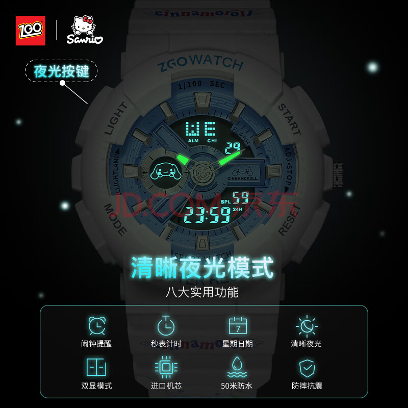 商品相册:正港(ZGO)x三丽鸥手表女学生初高中生电子手表少女儿童运动腕表 8511玉桂狗第
