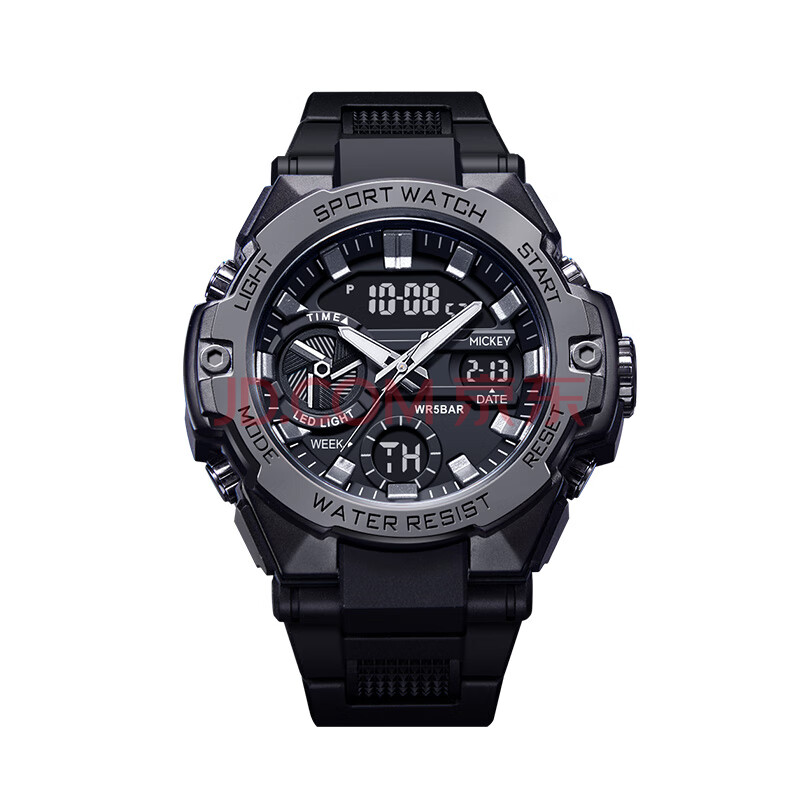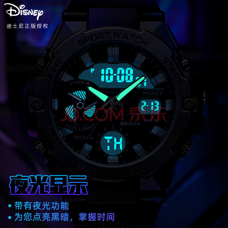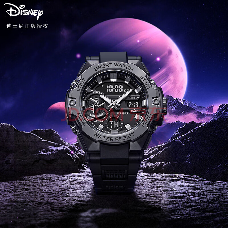 商品相册:迪士尼(Disney)手表男学生运动潮流青少年初高中生双显防水多功能电子表炫酷黑灰第