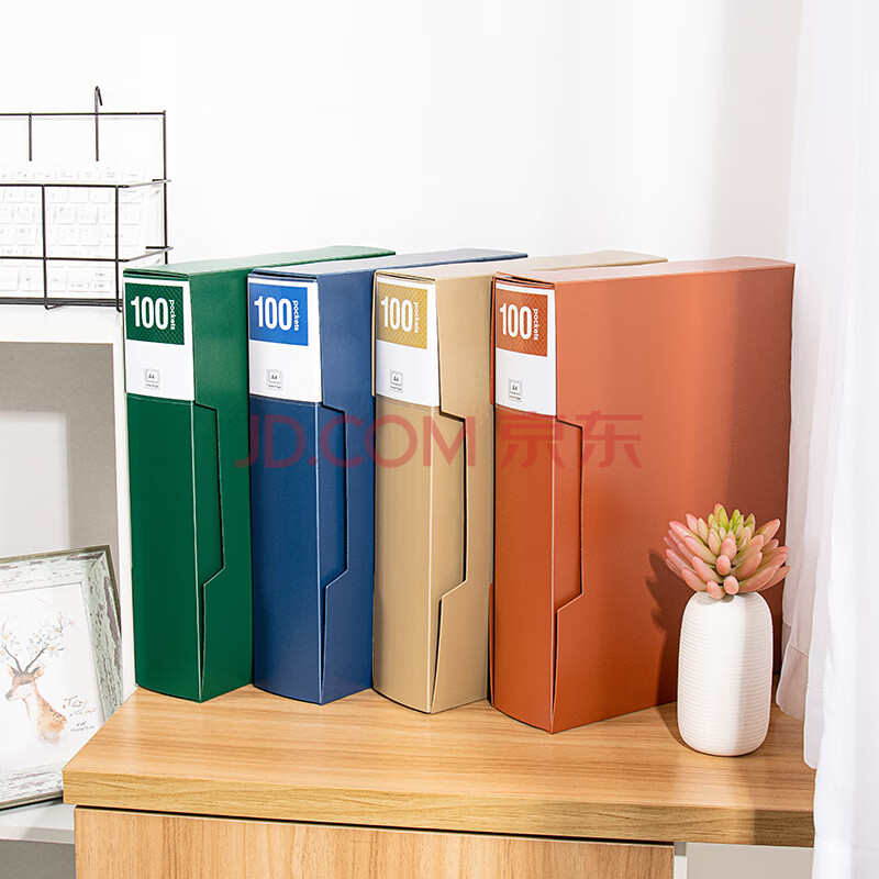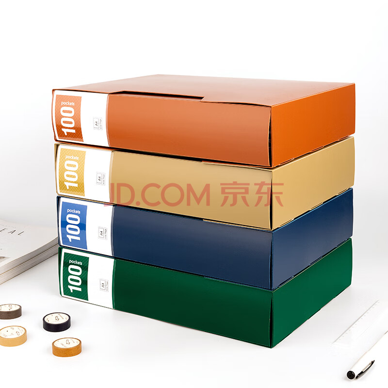 商品相册:天色 A4/100页大容量资料册插页文件夹 加厚带外壳活页收纳册档案盒试卷收纳活页夹 TS-20010 深邃蓝第