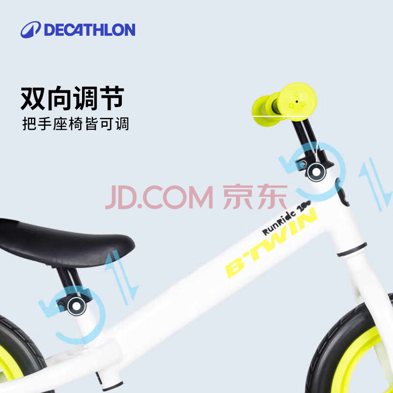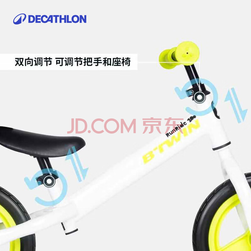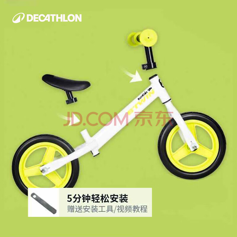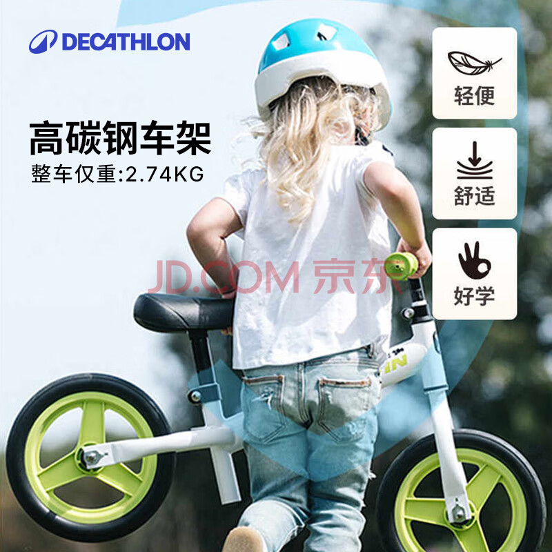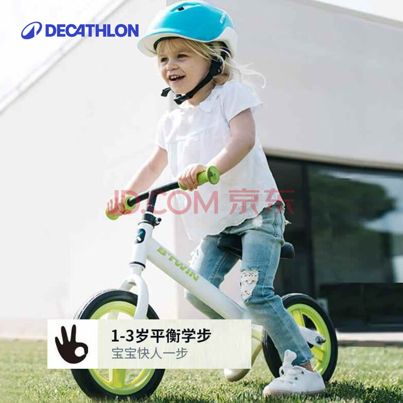 商品相册:迪卡侬儿童平衡车无脚踏1-3岁10寸滑步车绿色单速新老座椅随机-2203101第