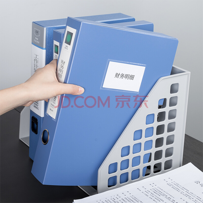 商品相册:得力(deli)1只55mmA4文件盒批发 加厚党建档案盒 桌面考试收纳 财会用品 5603蓝色第