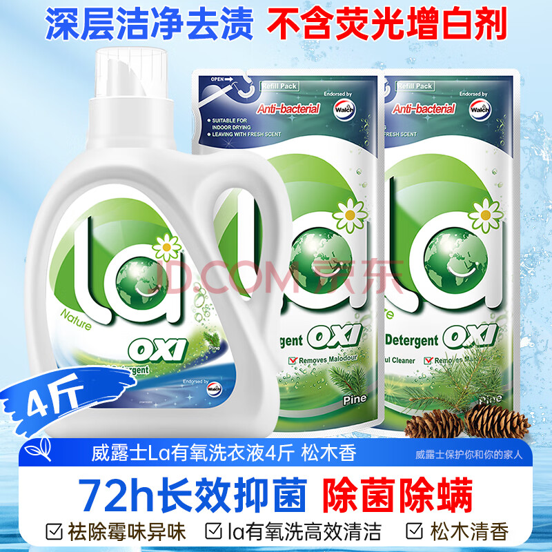 商品相册:威露士la有氧洗衣液松木香4斤组合装(瓶1L+补充袋装500ml*2)除菌除螨第