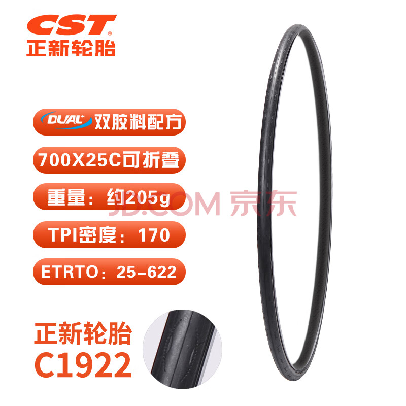 商品相册:正新轮胎自行车轮胎 700X25C C1922 CITO竞赛用 轻量化公路胎EPS/AR第