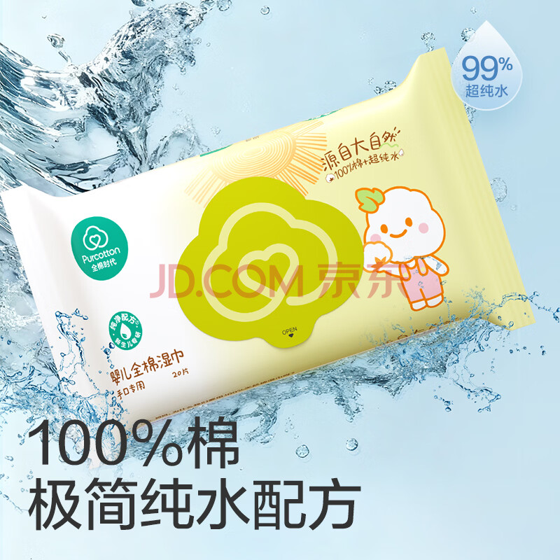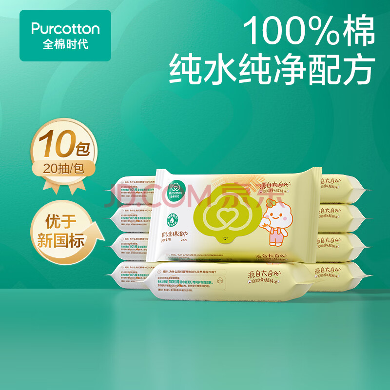 商品相册:全棉时代 婴儿湿巾宝宝湿纸巾100%纯棉湿巾便携装成人可用20抽*10包第