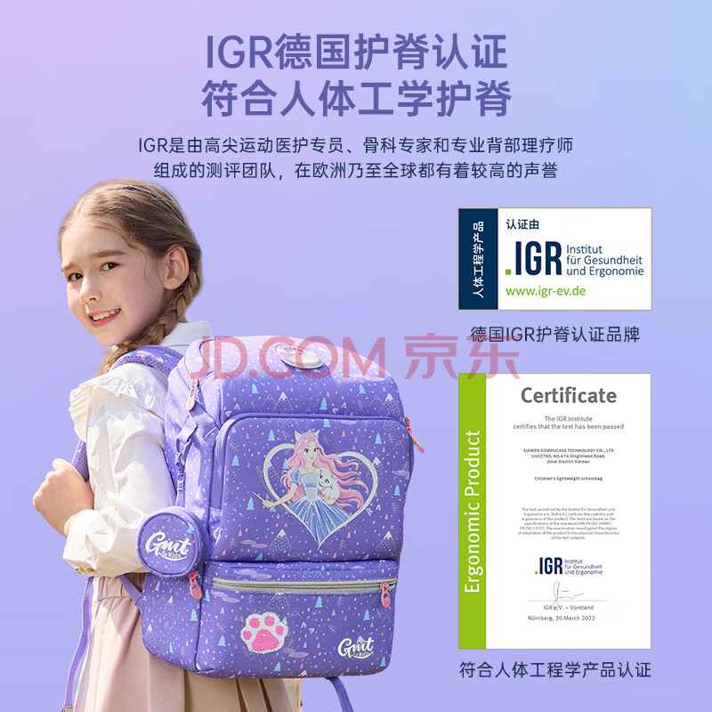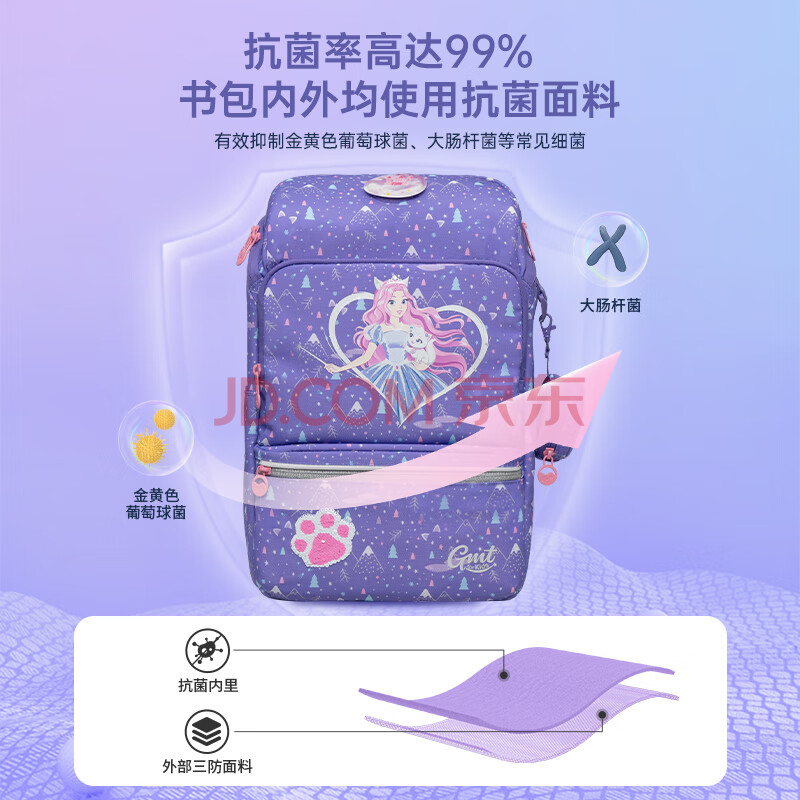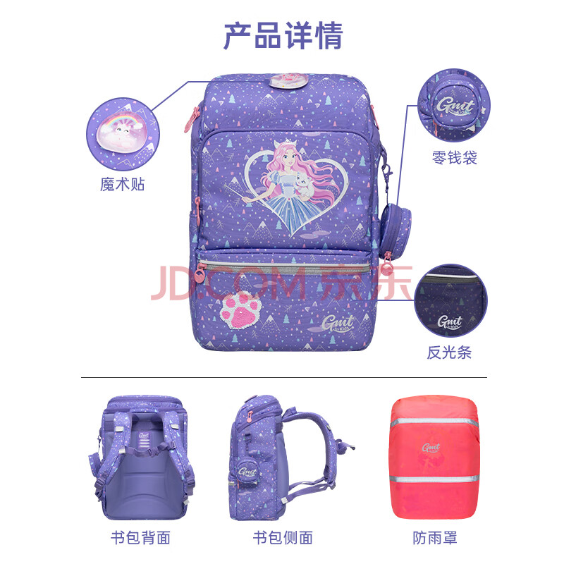 商品相册:Gmt for kids儿童书包小学生轻便护脊减负双肩包大容量礼物1-4年级女灵力萌猫第1张/共6