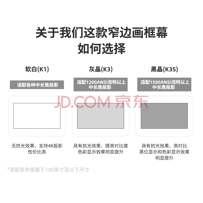 商品相册:鲸米(JINGMI)投影幕布120英寸16:9超窄边画框幕布K3灰晶抗光幕布投影仪家用幕布壁挂客厅卧室投影机屏幕第
