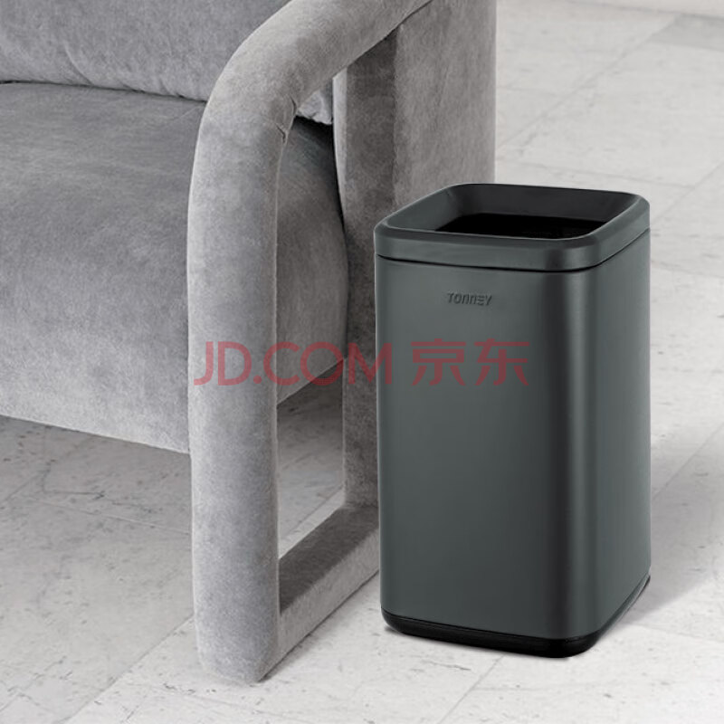 商品相册:唐年TONNEY垃圾桶办公室卫生间酒店客厅卧室家用无盖哑光黑7L SW-9007B第