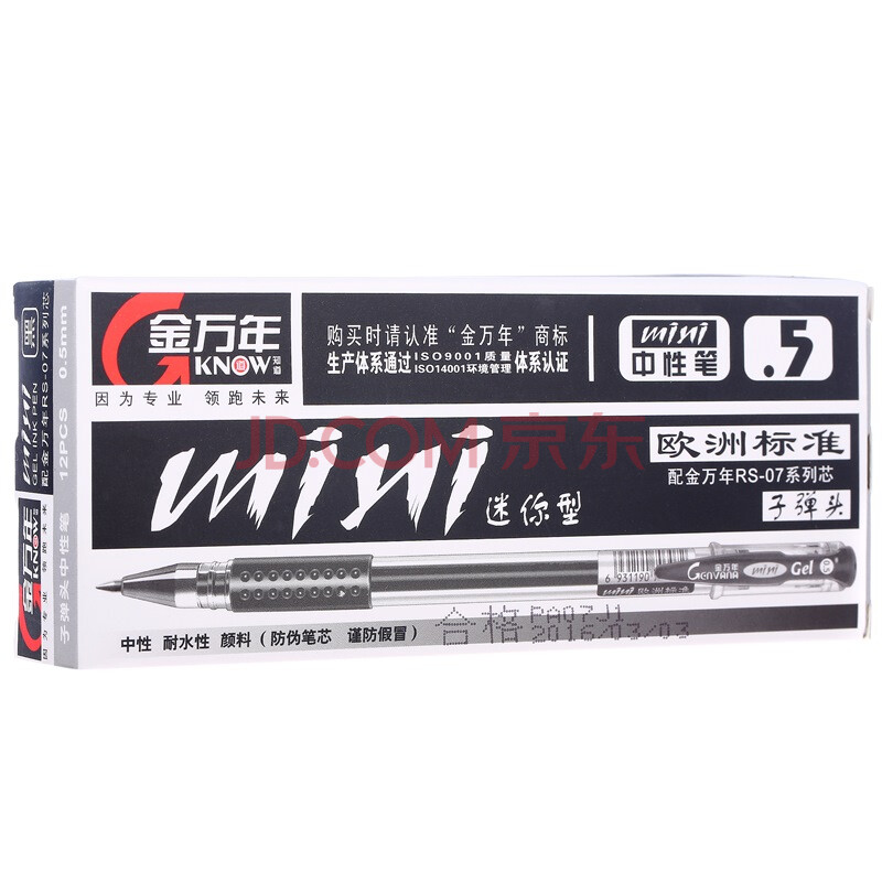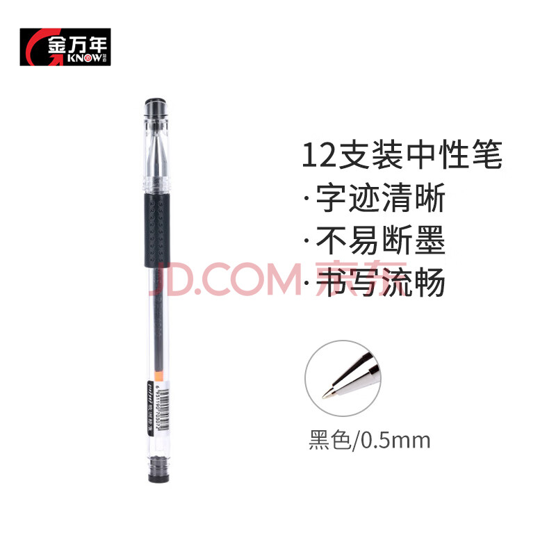 商品相册:金万年0.5mm黑色欧标中性笔子弹头签字笔水笔考试办公用品 MINI 12支/盒第