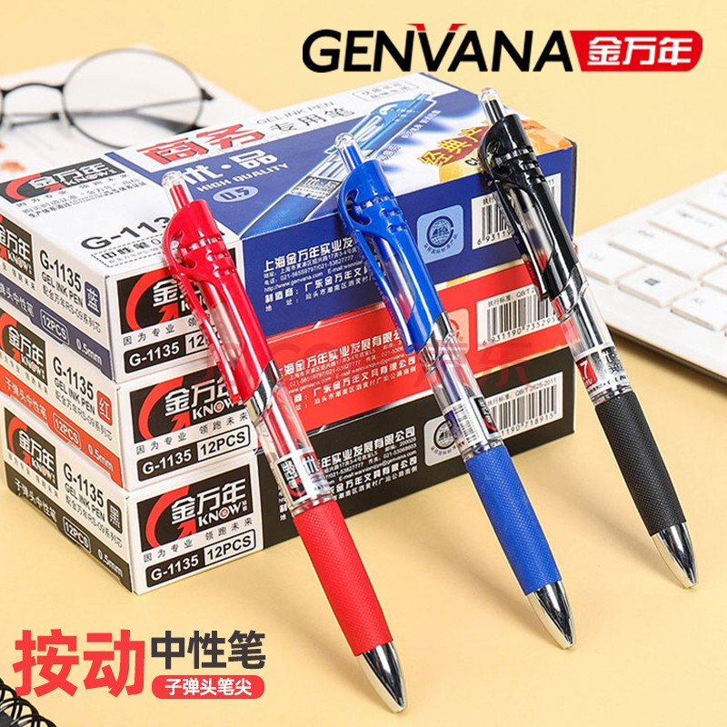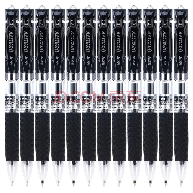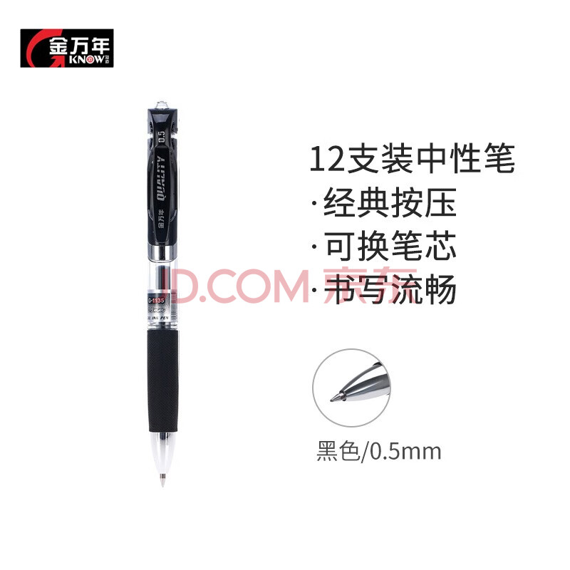 商品相册:金万年0.5mm黑色中性笔按动子弹头 办公用品 学生签字笔 会议笔财务考试专用水笔 12支装G-1135-001第
