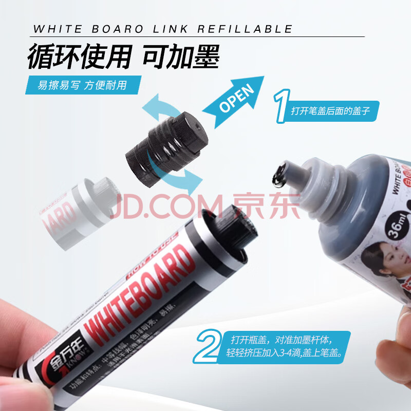 商品相册:金万年黑色可加墨水白板笔10支/盒办公会议可擦易擦 G-634第