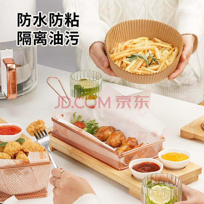商品相册:展艺圆形空气炸锅纸托53只装16cm 加厚加高食品级原木纸浆烘焙纸露营第1张/共4