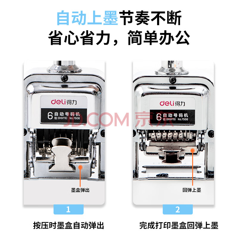 商品相册:得力(deli)6位财务办公自动号码机/打码机 盖印清晰 财务用品 办公用品 7506第