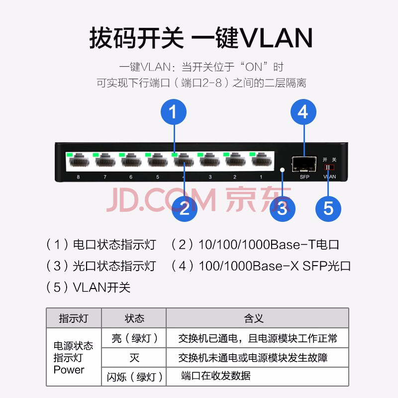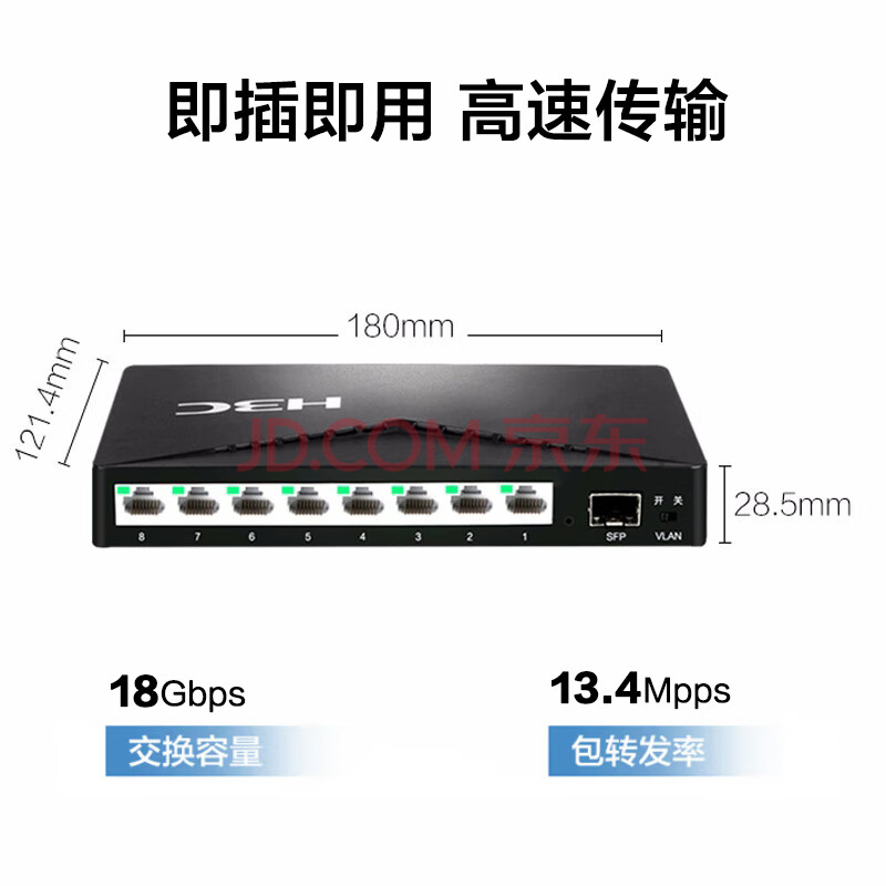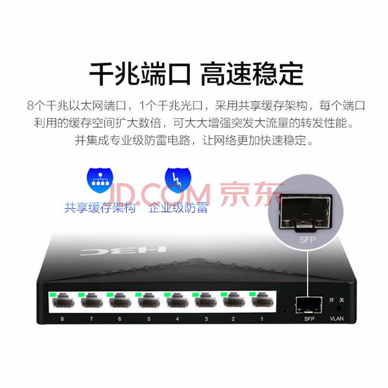 商品相册:华三(H3C)8口千兆电+1千兆光交换机 非网管企业级交换器 监控网络网线分线器分流器 S1209F第