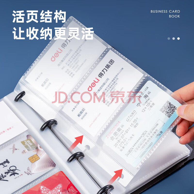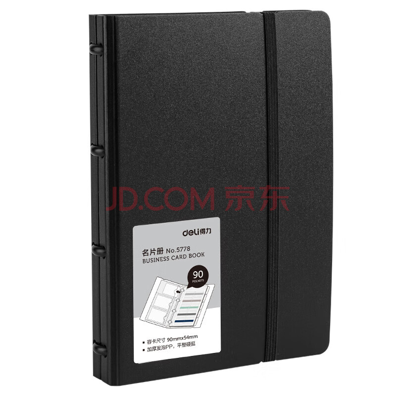 商品相册:得力(deli)90袋(180枚)活页带捆绳名片册 男女商务名片夹5778黑色第1张/共4