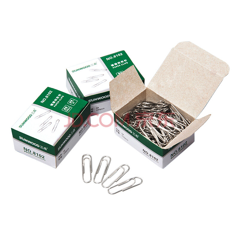 商品相册:三木(SUNWOOD)镀镍回形针/金属防锈曲别针/分类收纳 办公用品 100枚/盒 10盒装 8102第