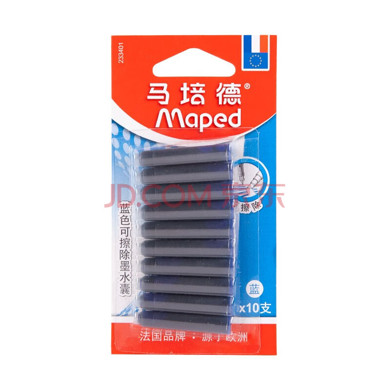 商品相册:马培德Maped 可替换钢笔墨囊墨水管墨胆 可擦墨囊10管装 蓝色 233401CH第