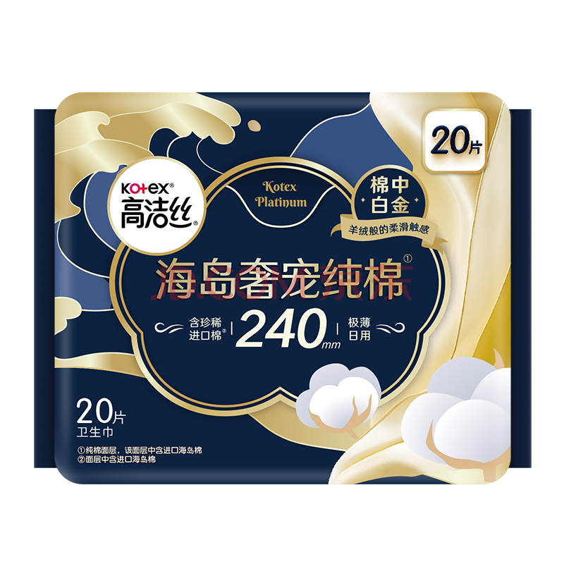 商品相册:高洁丝【近0敏海岛棉】奢宠纯棉卫生巾240mm20片日用姨妈巾京东自营旗舰第