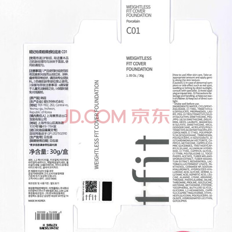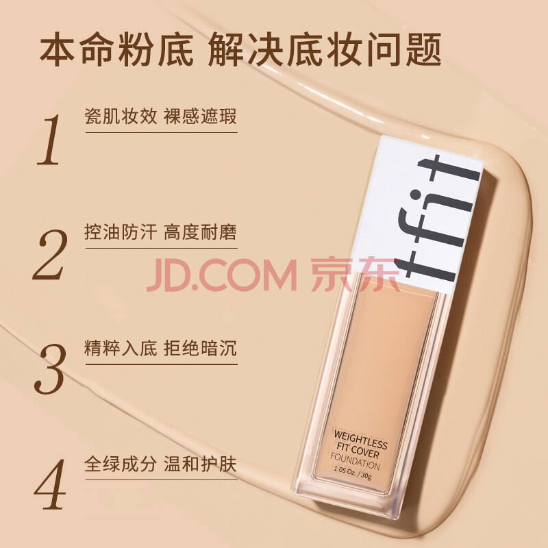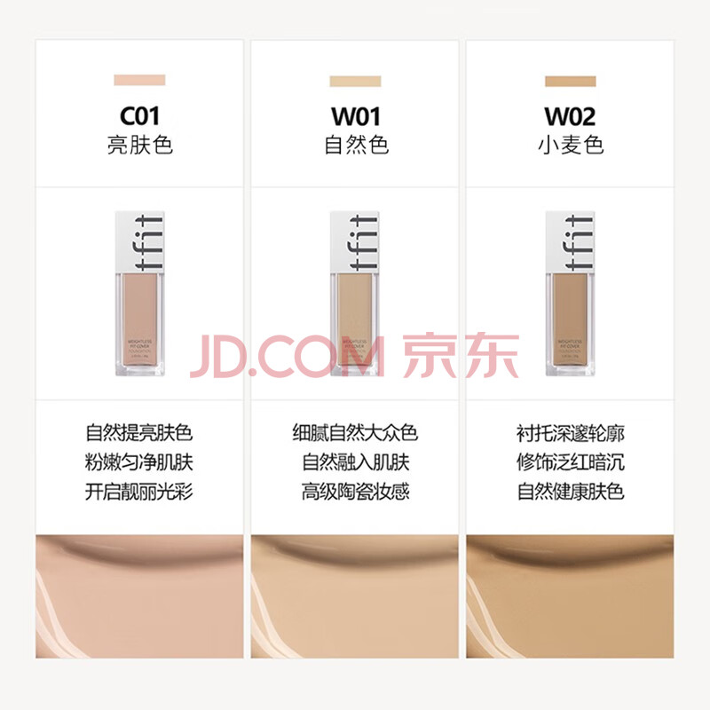 商品相册:Tfit粉底液遮瑕持久自然不脱妆混油皮女控油30g #C01白皙色第