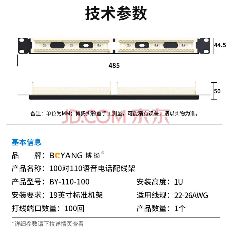 商品相册:博扬(BOYANG) 100对110语音电话配线架 电话工程综合布线线跳线架 BY-110-100第