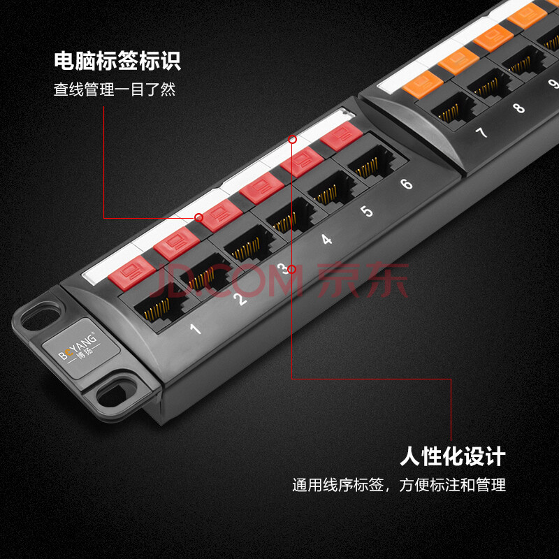 商品相册:博扬(BOYANG) 六类非屏蔽24口配线架 19"机架式1U机柜网络配线架 CAT6千兆网线RJ45跳线接线排 BY-6E-24X第
