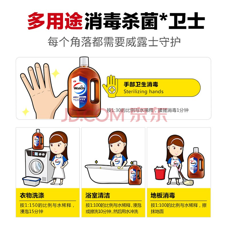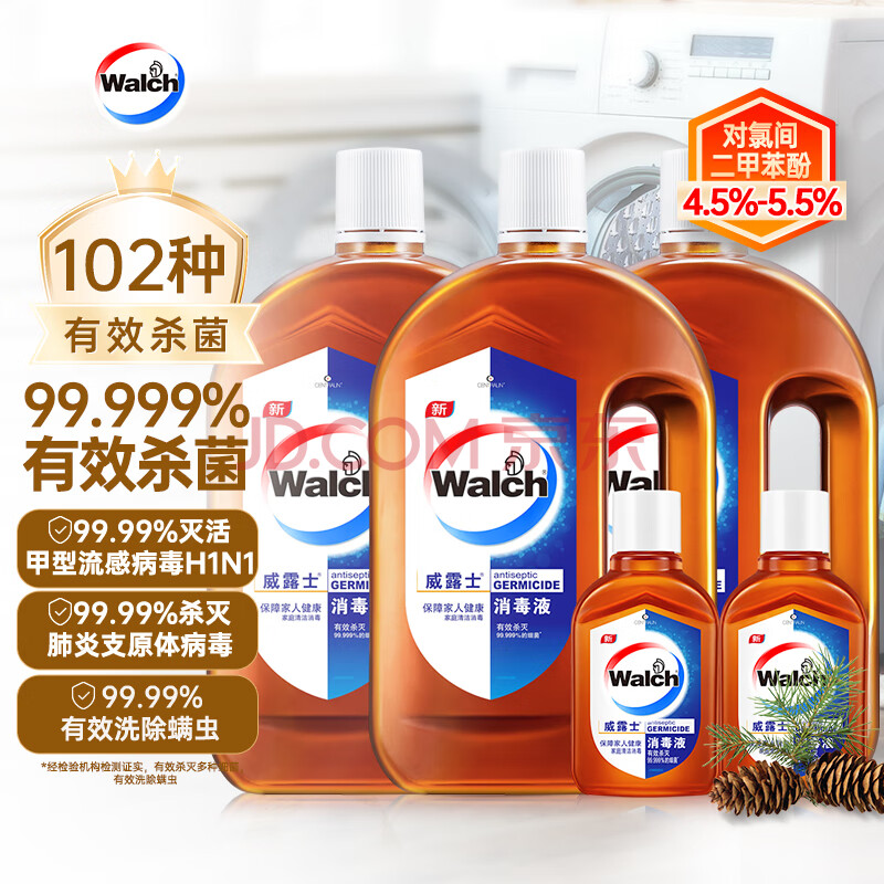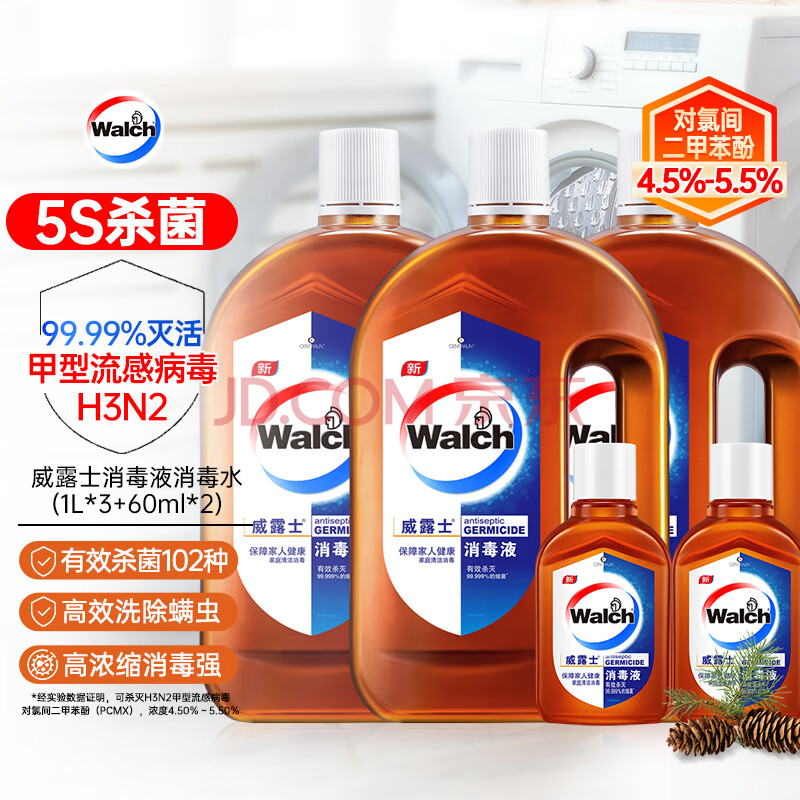 商品相册:威露士消毒液1L*3+60ml*2家居地板衣物消毒水杀菌除螨 灭甲流感病毒H3N2第